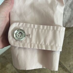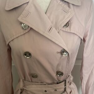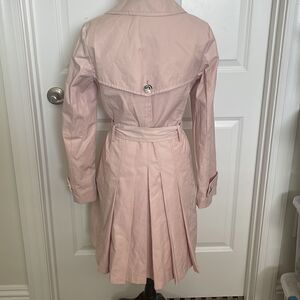 The details to this spring coat is so cute. The pleats in the back makes this coat! The color is a beautiful soft pink. No stains, no damage. So cute !