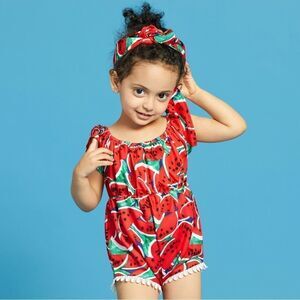 Adorable Baby Toddler Watermelon Print Romper and Headband Set