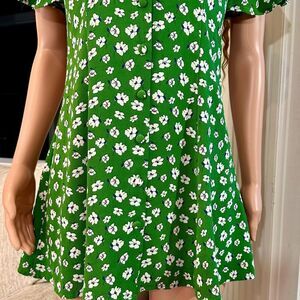 Adorable little green floral dress with button front. Flutter sleeves. Definitely mini so best for a shorter gal!