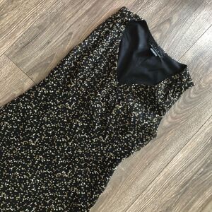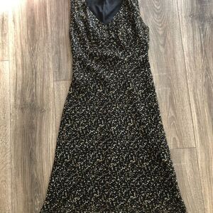 Faith, Love and Passion dress in prefect condition. Fully lined, both Shell and lining 100% polyester. 4 decorative buttons and pleating on shoulders and below bust. 40” from shoulder to bottom hem, 17” from armpit to armpit.