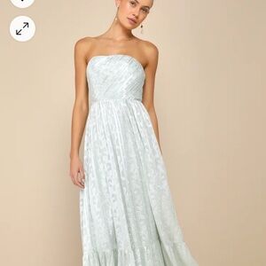 Adorably Elegant Sage Jacquard Floral Strapless Maxi Dress NWT