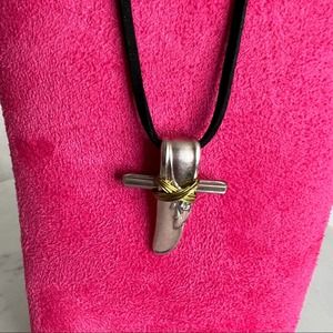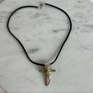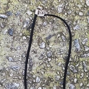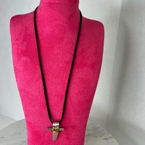 This beautiful cross slide is made from Adoration silverplate spoon pattern. This cross is approximately 2″ long and comes on a black suede leather cord.This beautiful cross slide is made from Adoration silverplate pattern. This cross is approximately 1.5” ″ long and comes on a black suede leather cord 9”-10” so approximately 18”-20” total for the cord