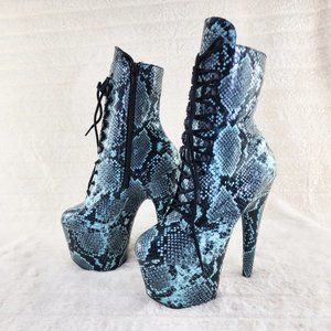 Adore 1020 Mint Snake Print 7" High Heel Platform Ankle Boots
