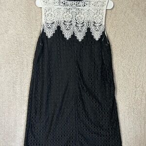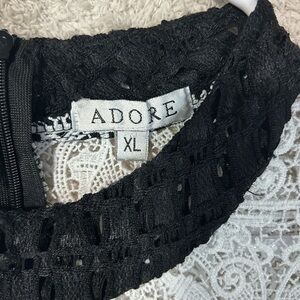 Adore Black And White XL Lace Mesh Crochet Chunky Knit Shift Tank Dress Cocktail
