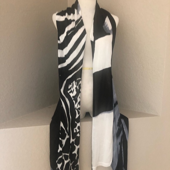 Dress up or casual..this black & white animal print long vest will add to any outfit!