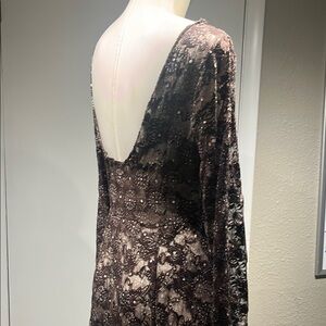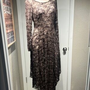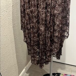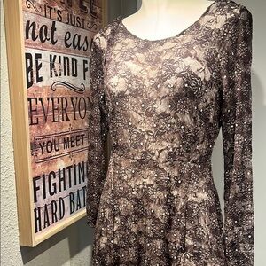 Adore Brown Tan Asymmetrical Gown with Bishop Sleeves