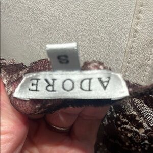 The Adore gown features a stunning blend of brown and tan, perfect for a wedding guest. Its asymmetrical hemline and bishop sleeves create a modern and elegant look, complemented by a scoop neckline. The smooth, flowing fabric ensures a graceful and sophisticated silhouette.