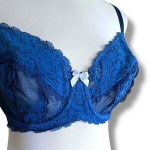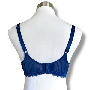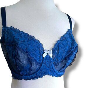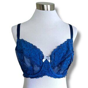 Adore Me 40C Bra Dark Blue Semi Sheer Lace Unlined Full Coverage Underwire