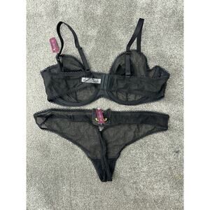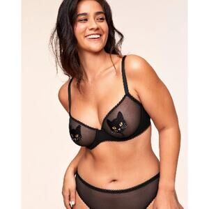 Adore Me Alyshia Unlined Bra Panty Set Black Cat Women 1X 44D NWT Mesh Sexy