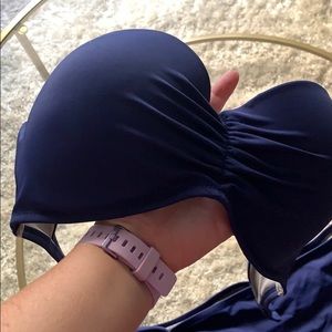 Dark blue/royal blue strapless bikini bathing suit. Top is a 36C. Bottoms are a large