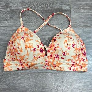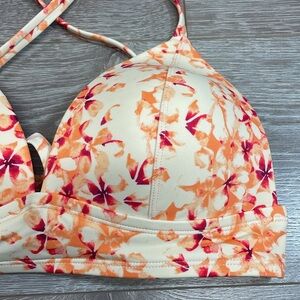 Adore Me Bikini Top Strappy Crossback Padded Watercolor Orange Floral L