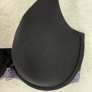Keywords: Adore Me bra, Black bra, Lace trim bra, Plunge bra, Size 34DD, Women's bra, Lingerie, Underwear, Sexy bra, Comfort bra, Modal bra, Purple lace, BR-03233-DEM, Designer Bra