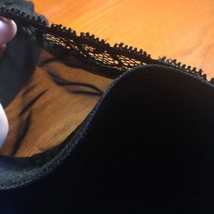 Beautiful black bra and underwear set. Nice lace detailing on edges of both the bra and panty.