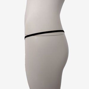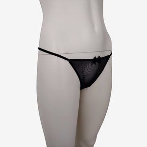 Black G string thong features a black sheer mesh front panel, and ultra slim, string sides and back. Accented by a small satin bow. Small gusset. Made from high quality, stretchy fabric.
