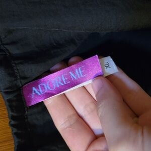 This black camisole from Adore Me features a sleeveless design with adjustable spaghetti straps for a customizable fit. The relaxed V-neckline and flowy fabric offer a comfortable and casual style, perfect for layering or wearing on its own.