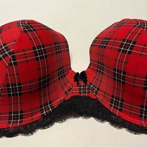 Adore Me Bra Red and Black Plaid with Lace Trim Size 44D