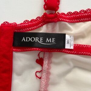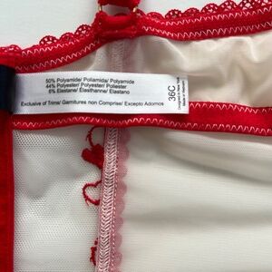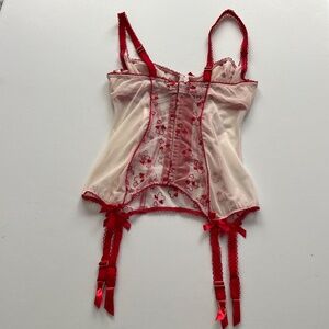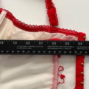 Adore Me Corset Lingerie Top Bustier 36C Red Romantic Mesh Hearts Sexy Coquette