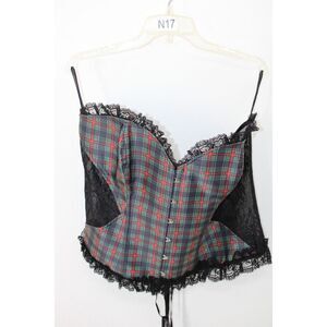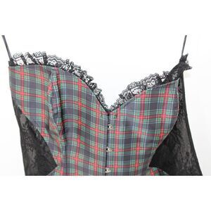 Adore Me Corset SZ 3X Black Lace Up Lingerie Overbust Bustier Plaid Holiday NWT