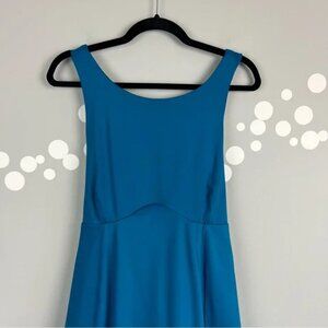 This vibrant blue athleisure dress features a full compression unitard underneath, with 3" shorts built in for secure, confident coverage whether you're flowing through yoga or running errands.