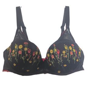 Adore Me Elie Contour Plus Black Floral Embroidered Lace Demi Bra Romantic 40C