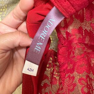 Adore Me Emmaline Red Unlined Lace Halter Studded Bra Panty Set 42H 1X