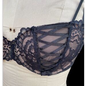Sexy balconette bra by Adore me. Size 36C. Lace cups with satin ribbon lace up detail. Satin split front straps with satin bows.