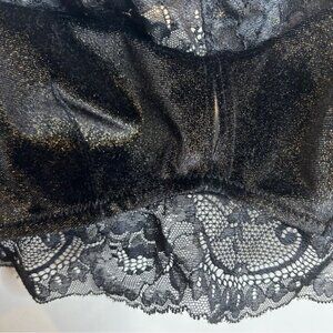 Adore Me Lace Trim Velvet Bra Bralette Black Gold