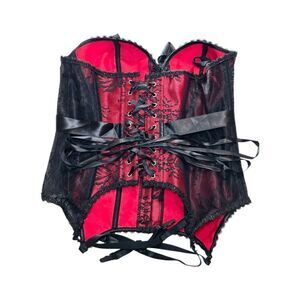Adore Me Lace Strapless Corset Size 0X Lace Up Red Black Garter Clips Lingerie