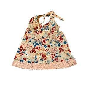 Cream with multicolor floral pattern and pink lace hemline. New With Tags No Damage Non smoking