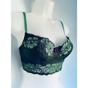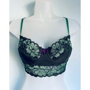 Adore Me Longline Bra Green Lace 34C