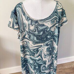 This comfortable sleepshirt is made with an ultra-soft polyester spandex knit in a fun tie-dye print. With a boat neck, drop shoulder, and short sleeves, this dress is perfect for lounging around the house all day.