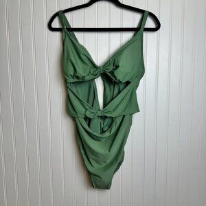 Adore Me NWT green Morgan one piece swimsuit bow detail peekaboo size 1X B42
