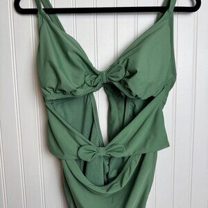 Adore Me NWT green Morgan one piece swimsuit bow detail peekaboo