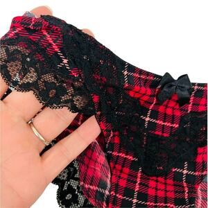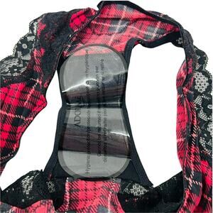 Adore Me Playful Red Black Plaid Hipster Panty Lace Trim XSmall
