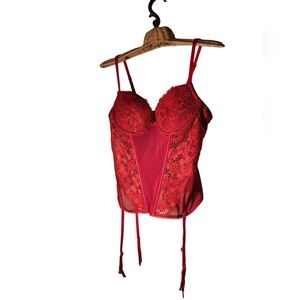 Adore Me RED Lace corset TEDDY w/ GARTER Clips Ladies 36B Vamp Vixen Lolita