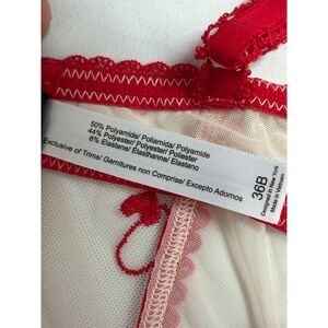 Adore Me Red Corset Lingerie Top Bustier 36B Romantic Mesh Lace Hearts Date
