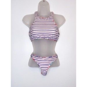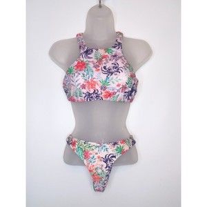 Adore Me SM Blue/Pink Reversible Bikini High Neck Sport Top Scrunch Butt Beachy