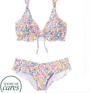 Adorable Adore Me "Tiffany" contour bikini bottoms! Ruffle design with an allover floral print. New with tags, size large. Selling the bottoms only!