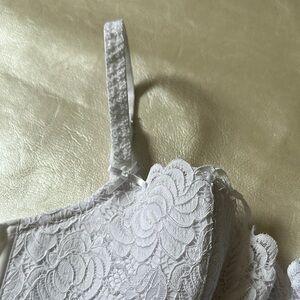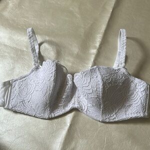 Experience elegance and comfort with this Adore Me white bra, featuring a textured floral design. The underwire construction and adjustable straps ensure a supportive fit, making it perfect for everyday wear. Enjoy full coverage and a touch of sophistication with this intimate essential.