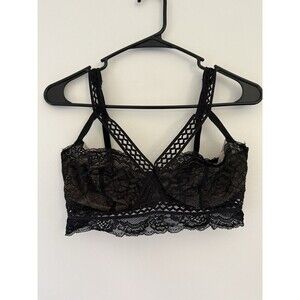Adore Me Women Bra 34D Black Beige Lace Unlined Underwire Adjustable Straps