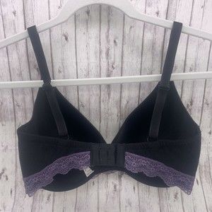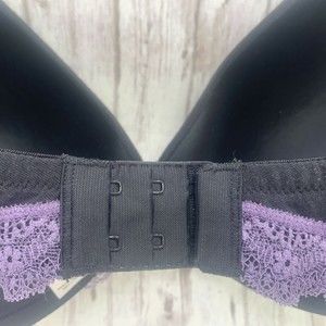 Adore Me Womens 34DDD Lined T Shirt Underwire Padded Demi Bra Black Purple Lace