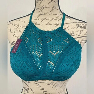 Adore Me Women's Lace Crochet Back Tie Wireless Bra Bikini Top size small green