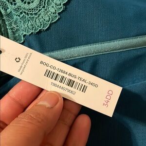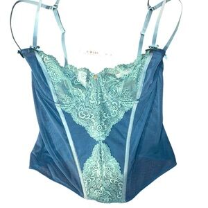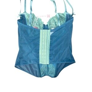 Discover elegance with this stunning teal lace bustier. Perfect for adding a touch of sophistication to your intimate collection.
