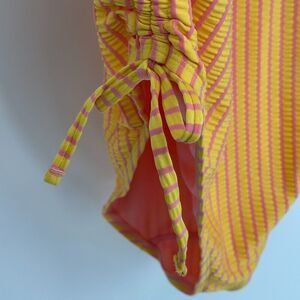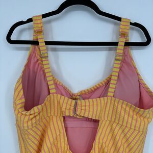 Adore Me Womens One Piece Swimsuit Size 2X Yellow Pink Stripe Beach Lined Ruched
