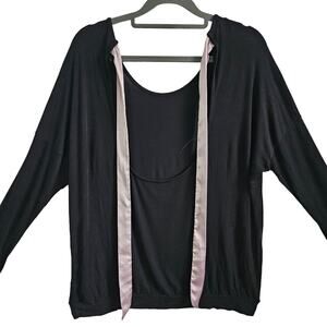 Adore Me Women's XL Long Sleeve Ribbon Tee Black Pink Balletcore Elevated Basic