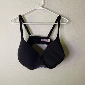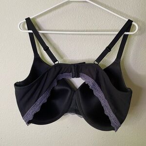 Adore Me black bra with purple lace accents. Adjustable straps. Size 46DDD.