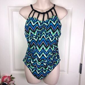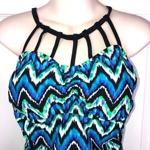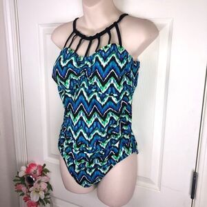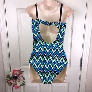 Excellent pre owned condition in a size 0x. Adore Me lattice neck chevron print one piece swimsuit.