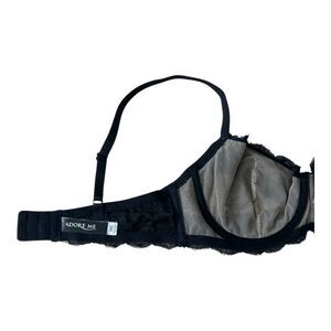 Adore Me Black Floral Lace Sheer Underwire Bra Size 34D Scalloped Lingerie, adjustable straps
