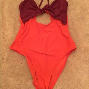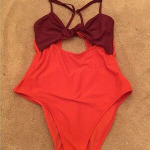 Adore Me Portia Contour One Piece Colorblock Swimsuit Red Purple Size Medium