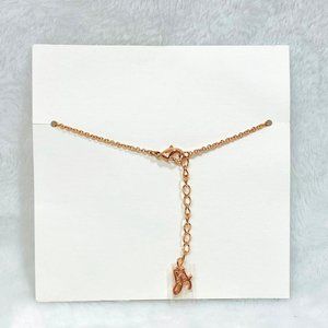 Adore organic circle bracelet in rose gold. There is one Swarovski crystal set in the circle. The bracelet is new on the card, and the circle and logo are protected by plastic sleeves. The first photo is a stock photo to show you what the bracelet looks like off the card. The closure is a lobster clasp. The chain measures approx. 6" with a 1.25" extender.